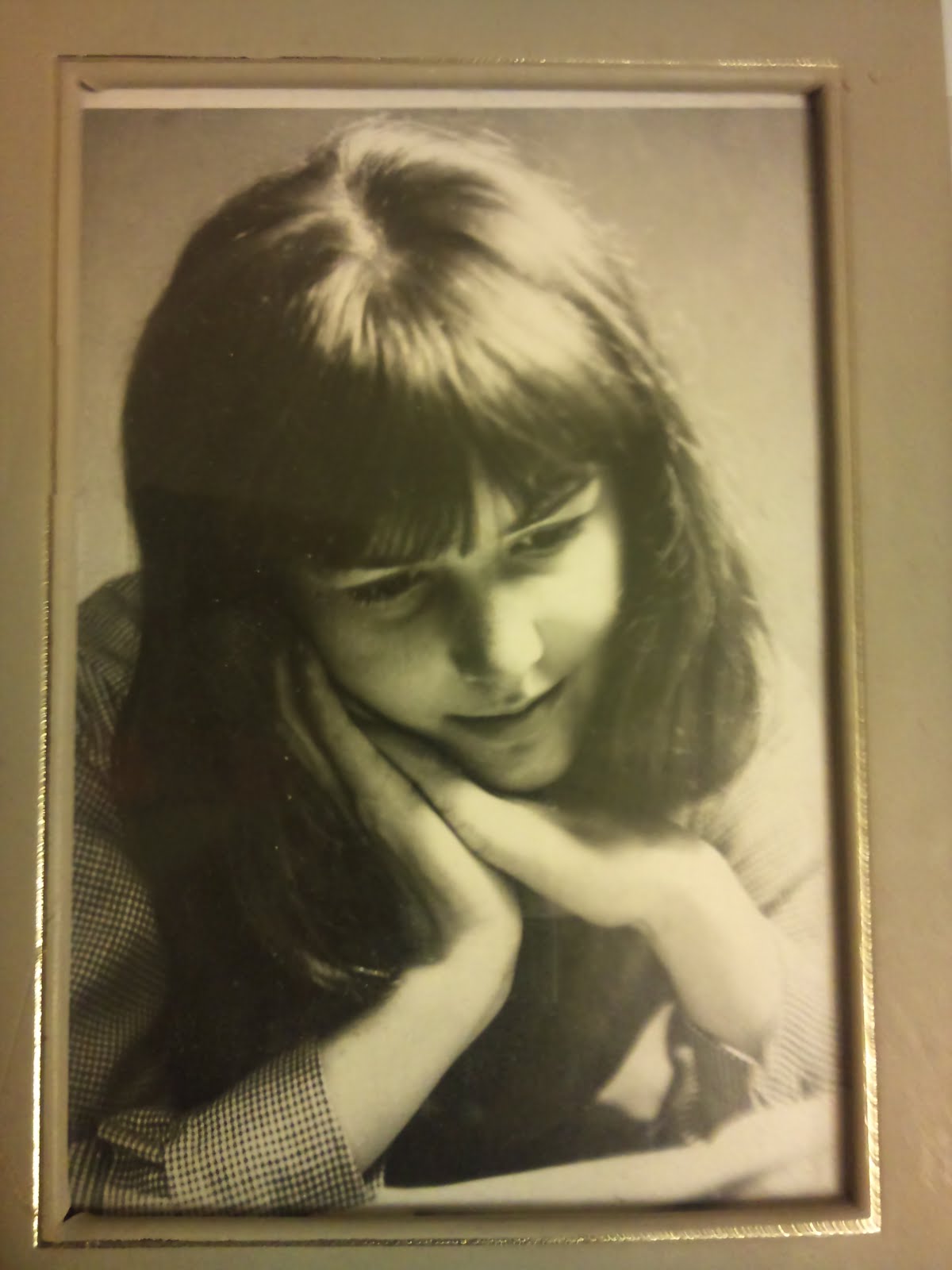 Det här är mamma. Hon är runt 20 år på bilden och ligger i sängen och pluggar latin. Det är farsan som har tagit bilden. Han var ganska duktig på att fota på den tiden. Speciellt porträttbilder. Besatt av att ta bilder på min mor. Det finns en uppsjö med bilder från den här perioden på henne. När hon sitter på en stol. När hon äter. Sitter i bilen osv. Just den här bilden är nog min favorit. Jag känner igen hennes snälla och vackra ögon. Sen har ljuset fallit väldigt vackert på hennes skalp också. Jag har fått höra, att min farfar var vädigt duktig på att fotografera också. Han fotade farmor på samma vis. Det var han som lärde upp farsan.